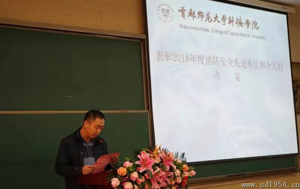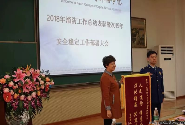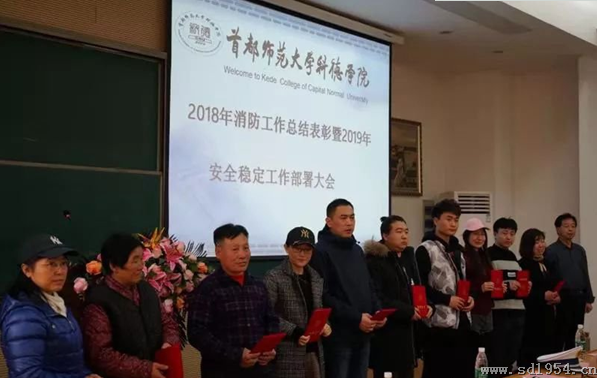 随后,后勤管理办公室主任王宝军宣读了《关于表彰2018年度消防安全先进单位和先进个人的决定》。学生处、教务处、传媒学院、继续教育学院共4个单位荣获消防安全“优秀集体”称号;国旗护卫队、校园纠察队、应用文理学院共3个团体荣获消防安全“突出团队”称号;另外对25名教师、2名学生消防优秀先进个人,突出贡献2名教师个人和拾金不昧优秀个人2人进行了表彰。与会领导纷纷上台为获奖的优秀集体单位和优秀先进个人教师颁发了荣誉证书和奖品。