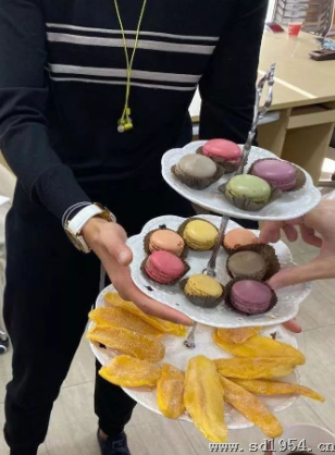 活动热烈进行中,学姐为大家端上来一块非常美味的大蛋糕。然后由王金麟教授切第一刀,表达对同学们的圣诞祝福,也意味着新的一年工作室会越办越好。每一位同学都品尝到,并且从中感受到会展工作室这个大家庭的温暖。