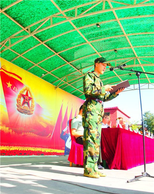2015级传媒学院呼和同学代表参训学生发言,郑重承诺在两周的军训期间一定会扎实训练不松懈,振奋精神勇作为,刻苦训练、不辱使命,把热血青春最宝贵的回忆深深印在共和国的练兵场上。