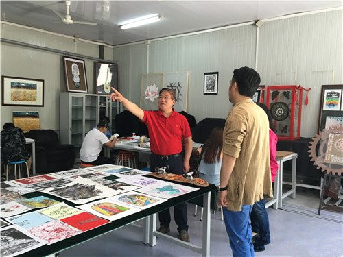 经过“工作室(制)的教学模式探讨”和“我校人才培养方案制订——专业工作室(制)与大类培养的视角”两次研讨会,工作室(制)这种教学模式得到了与会者的一致认可。为了让教师们对工作室拥有更深切的体会,5月4日教师教学发展中心组织包括沈孝本副院长在内的教师参观了艺术设计学院李致维老师的版画工作室并与李致维老师及其学生进行了交流探讨。